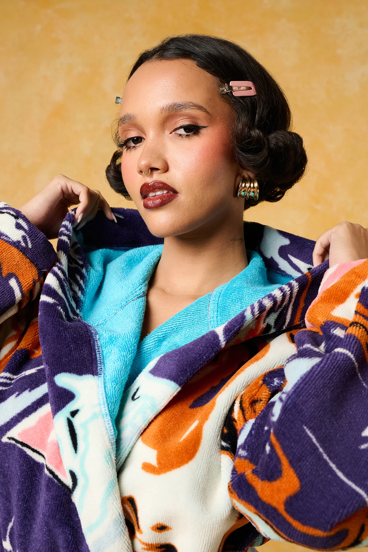 Gaia Hooded Printed Robe - Purple
